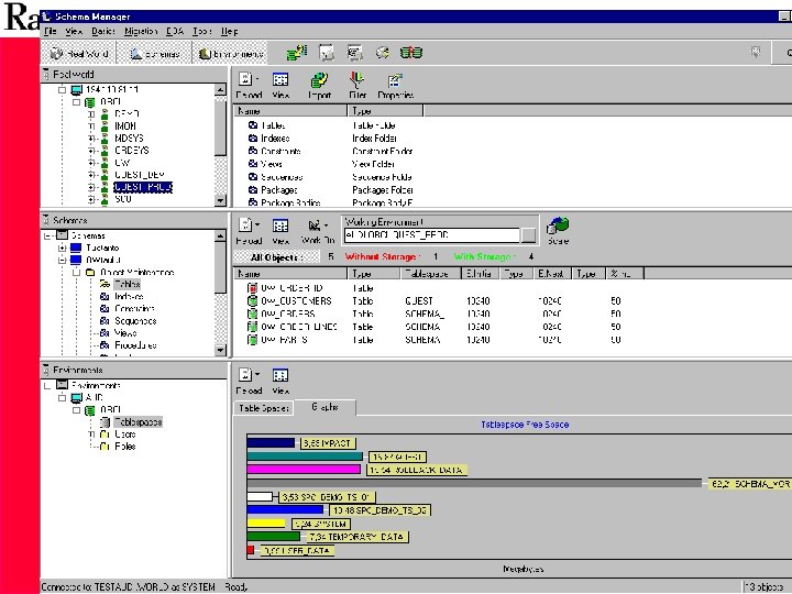 Space Manager -ratkaisu • • • Seuraa kasvua ja objektien kuntoa Havaitsee tilaan liittyvät ongelmat Määrittelee objektien koot optimaalisiksi Uudelleenorganisoi nopeasti Ennustaa “out of space” -tiloja Tarjoaa kapasiteettisuunnitelu- & kannan kasvuanalyyseja