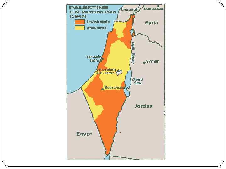 Предыстория конфликта 1920, 1929, 1933 гг. – еврейские погромы. 1941 г. – Фархуд (крупнейший еврейский погром). 1947 — принятие ООН плана по разделу Палестины на арабское и еврейское государства.