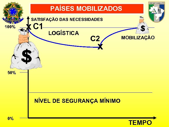 PAÍSES MOBILIZADOS SATISFAÇÃO DAS NECESSIDADES 100% x C 1 LOGÍSTICA C 2 x MOBILIZAÇÃO 50% NÍVEL DE SEGURANÇA MÍNIMO 0% TEMPO