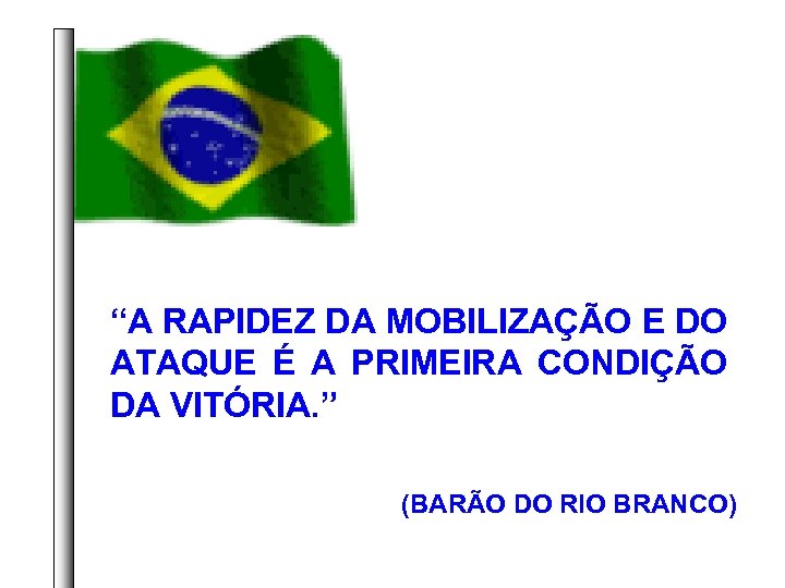 “A RAPIDEZ DA MOBILIZAÇÃO E DO ATAQUE É A PRIMEIRA CONDIÇÃO DA VITÓRIA. ” (BARÃO DO RIO BRANCO)