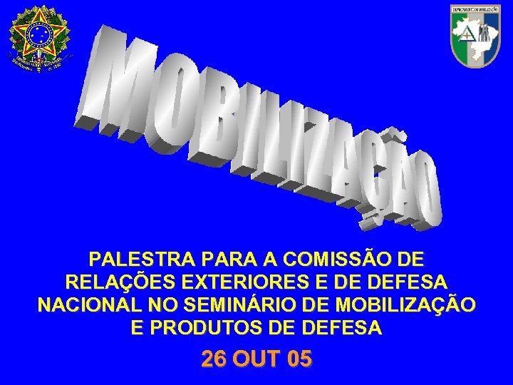 PALESTRA PARA A COMISSÃO DE RELAÇÕES EXTERIORES E DE DEFESA NACIONAL NO SEMINÁRIO DE MOBILIZAÇÃO E PRODUTOS DE DEFESA 26 OUT 05