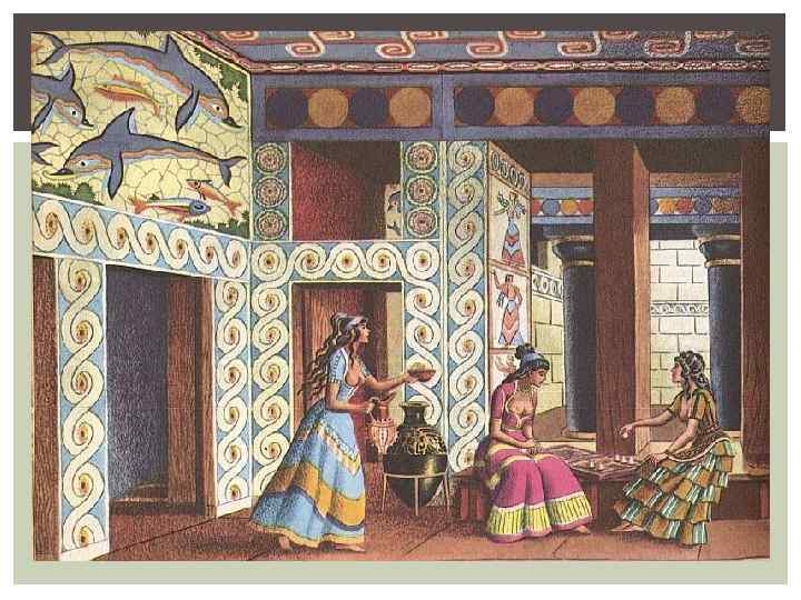 ИДЕЯ СТИЛЯ - УТОПИЧЕСКАЯ РЕЛИГИОЗНОСТЬ (РЕЛИГИЯ ЗЕМЛИ И ПЛОДОРОДИЯ). Признаки стиля: дворцы и толосы; культ быка; профильные изображения; «примитивная» скульптура; доминирование ярких жизнерадостных; цветов: бирюза, красный, желтый.