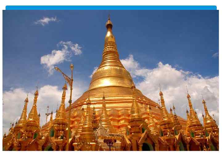 Исторический памятник Шведагон олицетворяет Бирму, как Московский Кремль — Россию. Храмовый комплекс — один из крупнейших ансамблей не только Бирмы, но и всей Юго-Восточной Азии. За десятки километров от Рангуна, с моря и с суши, виден золотой корпус его центральной ступы, поднявший свой «зонт» на стометровую высоту… Ступа Шведагон. XIV— XIX вв. Высота 99, 5 м Рангун, Бирма