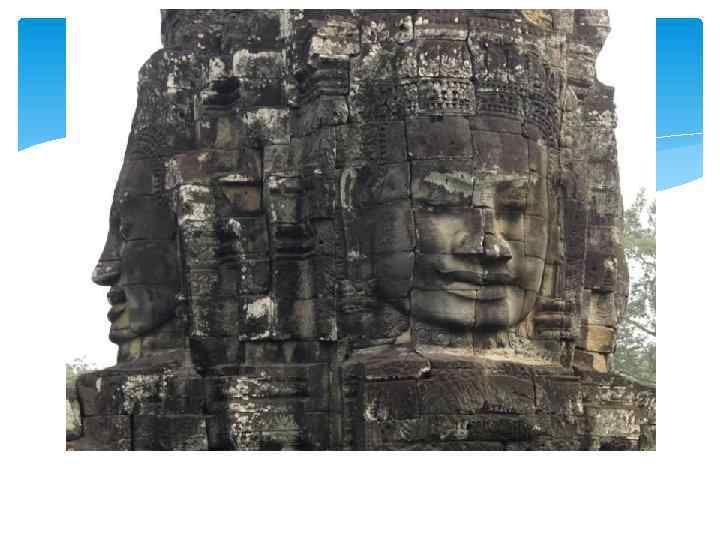 Кхмерские цари, поклонявшиеся индуистским божествам, также оказывали покровительство и буддизму, особенно с XI в. ; эта поддержка достигла пика при царе Джаявармане VII (1181— 1219), когда были созданы выдающиеся буддийские памятники. Наиболее значительный из них — ансамбль Байон, находящийся в центре огромного комплекса Ангкор. Тхом. Это единственный полностью завершенный храмовый комплекс кхмеров и действительно великолепная дань памяти Джаяварману VII, отличавшемуся неутолимой жаждой созидания. С окончанием правления Джаявармана в Камбодже наступил кризис государственной власти, и хотя буддизм постепенно занял доминирующие позиции в жизни общества, отсутствие покровительства со стороны правителей положило конец великому искусству кхмеров.