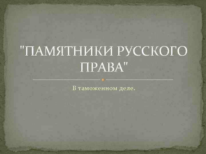 "ПАМЯТНИКИ РУССКОГО ПРАВА" В таможенном деле.
