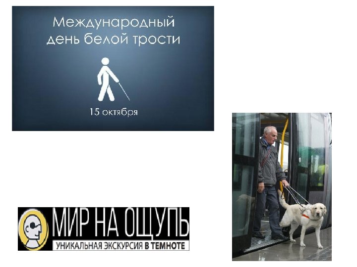 Ольга Скороходова (19111982)-поэтесса, педагог «Я умом увижу, чувствами услышу, А мечтой привольной мир я облечу: Каждый ли из зрячих красоту опишет, Улыбнется ль ясно яркому лучу? » Телешоу «Удивительные люди» Эдуард Нехаев (владеет методом эхолокации) Как называется День, посвященный незрячим людям? Отмечается 15 октября (2 балла)