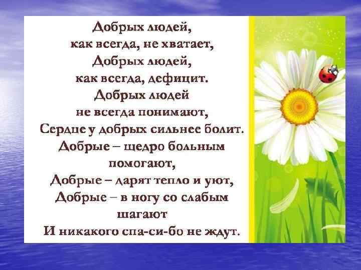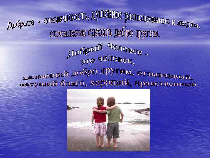 1. Каков ты по характеру? Подбери для характеристики 3 прилагательных. 2. Продолжи фразу: «Добрый человек - это человек, который …» 3. Можно ли назвать добрым то, кто: Ø Даёт списывать домашнее задание? Ø Говорит тебе о твоих недостатках? Ø Всегда угощает тебя конфетой? Ø Никогда с тобой не спорит, а во всем с тобой соглашается? 4. Вспомните и запишите пословицы о добре.