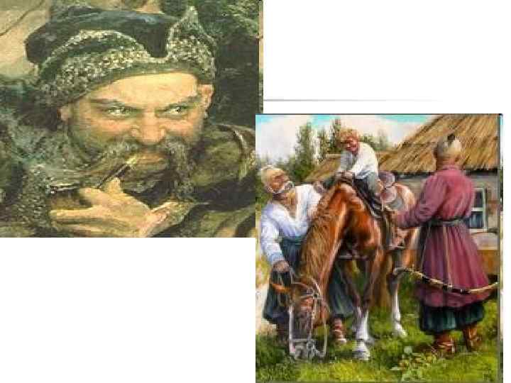 Прислів’я і приказки n n n n n «Гора з горою не зійдеться, а чоловік з чоловіком зійдеться» . «Ще поспіють з козаками на торг» . «Удар ти лихом об землю!» . «Дівка, кажуть, як верба: де посади, там і прийметься» . «Лучче мені проміняти шаблю на веретено, аніж напасти вдвох на одного!» «Здоров’я почало брати гору, наповняло козацьке тіло, як вода колодязь» . «Де два козаки, там вони третього самі судять» . «Тоді скажеш гоп, як перескочиш» . «Усе й розкотиться, як горох із жмені» . «Сіль тобі на язик, печина в зуби» .