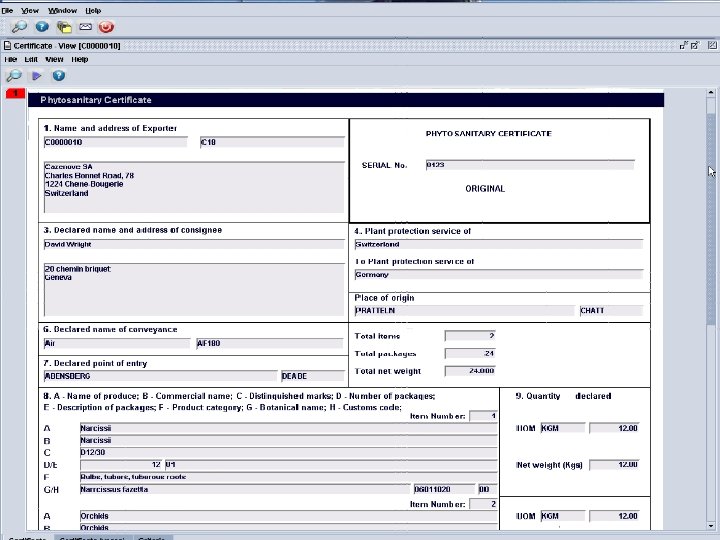 Single Window Environment Global Business Processes On-line status of PSC Applicant / Trader - Exchange of pre-arrival data (confirmation of arrival in the country of destination) Request for PSC in electronic format On-line status of PSC NPPO NPP NL Processing of request Inform trader No Request approved ? Yes Customs Processing of SAD; Automatically : • Control: validity of license • Customs declaration vs. license • Write-off license • Apply risk-management