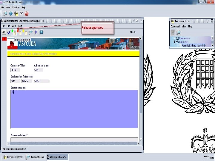 ASYCUDA Platform – Single Window Implementation of Inter-agency Business Processes and Multi-agency Risk-management • Identify the events where exchange of information between Customs and other government agencies should take place to verify the existence/validity/availability of supporting documents and their applicability to given customs declarations (relevance of certificates/licenses to the goods declared in the customs declaration). Implementation of controls. • Provides each agency with the facility to define & integrate specific risk-management and selectivity criteria for transit/import/export declarations, in a secure environment (not to be accessible to other agencies).