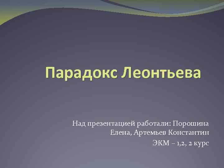 Парадокс Леонтьева Над презентацией работали: Порошина Елена, Артемьев Константин ЭКМ – 1, 2, 2 курс