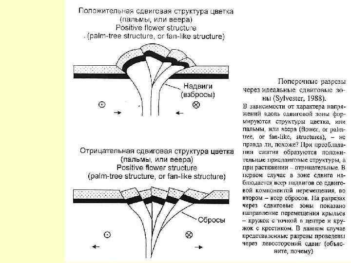 Транспрессия – тектоническая обстановка сочетающая сдвиг и сжатие Транстенсия - тектоническая обстановка сочетающая сдвиг и растяжение Структура цветка в зоне транспрессии