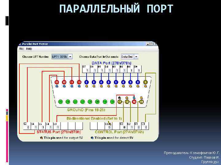 ПАРАЛЛЕЛЬНЫЙ ПОРТ Преподаватель: Ксенофонтов Ю. Г. Студент: Павлов И. Группа 392