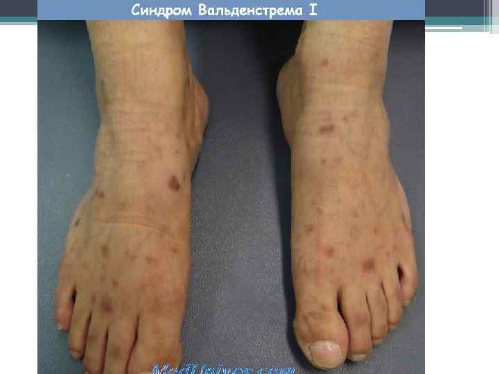 Продолжение… • Доминирует синдром гипервязкости крови. • Ig. M взаимодействует с миелиновой оболочкой, поэтому часты неврологические симптомы: нейропатия, снижение зрения, парезы.