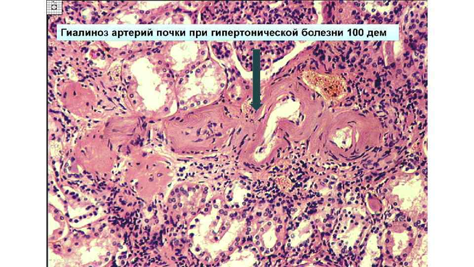 Причины характерного вида почек: • Симметричность процесса – одинаковое патологическое влияние повышенного артериального давления на обе почки • Уменьшение размеров – гиалиноз клубочков препятствует нормальному кровоснабжению коры, вызывая атрофию (не работает «чудесная сеть» ), вызывая ее атрофию • Уплотнение консистенции – та же причина (приводит к склерозу стромы) • Мелкозернистая поверхность гипертрофия сохранных клубочков, которые придают поверхности характерный вид • Разрастание жировой клетчатки в воротах - результат уменьшения размеров почки