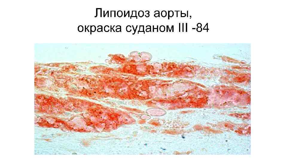 Примеры паренхиматозных липидных дистрофий Состав липидных капель Характеристика Примеры Жирные кислоты, нейтральные жиры, фосфолипиды, триглицериды Несоответствие между поступлением липидов в клетку и их утилизацией Распад ультраструктур (? ) Жировая дистрофия печени A. избыточное поступление – сахарный диабет, ожирение B. Нарушение утилизации (синтеза липопротеидов): a) Дефицит АТФ (гипоксия) b) Повреждение ферментов и транспортных белков (токсические вещества), например, алкоголем c) Нарушение синтеза ферментов (недостаток аминокислот, кофакторов) Жировая дистрофия миокарда Нарушение утилизации (β-окисления): a) Дефицит АТФ (гипоксия) b) Повреждение ферментов и транспортных белков (токсические вещества), например, дифтерийным токсином c) Нарушение синтеза ферментов (недостаток аминокислот, кофакторов) Жировая дистрофия почек при нефротическом синдроме (см. выше) Нарушения обмена Цереброзидозы, Болезнь Гоше, Тея-Сакса…
