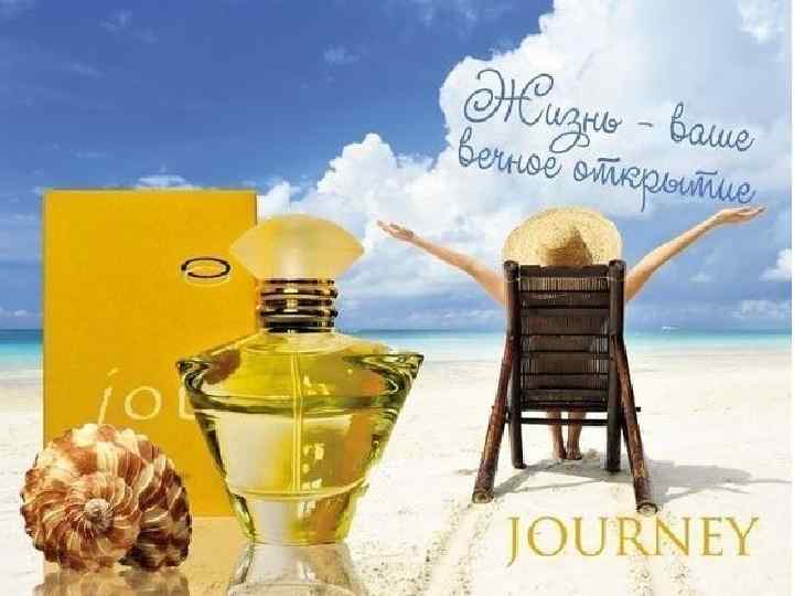 Парфюмерная вода Journey ® цветочно-водный аромат Девиз аромата: жизнь-ваше вечное открытие! Верхние ноты: мята, водяной кресс, водяная лилия. Средние ноты: дикая фрезия, флокс, английский пион, белая сампакита. Нижние ноты: английская роза, звёздчатая полынь, абрикосовый мускус. Солнечный свет в звучании этого аромата – отражение весенней эйфории! Столько в нем воздуха, полета! Женщина, доверившая его крыльям свою красоту, многократно, как эхо в горах, усиливает свое воздействие на окружающих, даря им радость, веселье, оптимизм. Она воспринимает жизнь, как вечное открытие, путешествуя по ней уверенно, и уже сегодня готова к завтрашнему дню. Она никогда не останется одна, а встретит на своём пути спутника жизни. Дизайн упаковки и флакона разрабатывала самая дорогая дизайнерская фирма - Ламборджини. Для презентации парфюмерной воды во Франции были изготовлены красивые хрустальные флаконы, отшлифованные вручную. Серебряное и золотое кольца, опоясывающие горлышко флакона символизируют бесконечность жизни. Кстати, эти кольца можно снять и носить в качестве украшения на шейном платке. Флакон упакован в коробочку из тисненого картона - желтого снаружи и небесно-голубого внутри. Желтый цвет олицетворяет тепло и солнечный свет, а голубой - конечно же, небо - символ постоянно меняющейся жизни. Легкая, любящая путешествия, общительная, увлекающая и увлекающаяся Создан в 1997 г. , парфюмерный дом Ферминикс (FIRMENICH & CIE), парфюмером Анзив (Анни Бузатян). Дизайн упаковки – Тим Медди Награды: Занял первое место среди ароматов, выпущенных в 1997 г. Вошел в число десяти самых популярных женских ароматов 1997 г. стойкость – очень стойкий; шлейф - средний Идея и разработка: Анастасия Ковалевская, Арина Кузнецова, Светлана Хорошавина, Татьяна Дроздович, Юлия Архипова 50 мл