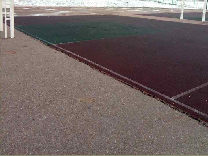 Виды и устройство покрытий В большей степени велосипедные и пешеходные дорожки ограничиваются обычным асфальтированным покрытием, но на территории спортивных площадок, а также детского городка, установлена специальная одежда из уплотненной резиновой крошки. На остальных площадках покрытие из песка.