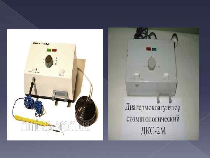 Диатермокоагуляция және диатермотомия Емдік факторы: жиілігі жоғары (1 -2 МГц), кернеуі төмен (150 -200 В), күші жоғары (2 А) және тығыздығы 6 -10 м. А/мм 2 (диатермокоагуляция) және 40 м. А/мм 2 (диатермотомия) айнымалы ток. Терапиялық тиімділігі: қанағыштықты, тіндік ыдырау өнімдерінің сіңірілуін және микроорганизмдердің қан тамыры арнасына түсуін болдырмайды, операциядан кейінгі ауыру сезімін бәсеңдетеді. Көрсеткіштері: Пародонт қалталарында грануляциялы тіннің болуы, ұлғайған гингивитте жүргізілетін электрлік хирургия. Қарсы көрсеткіштері: жүрек-қан тамыры жүйесінің жетіспеушілігі, токқа жеке төзуге болмаушылық. Аппаратурасы: ДКС-2 М, ЭС-30. Әдістеме: Қызыл иек бүртіктеріне диатермокоагуляция қолдану ұлғайған гингивитте мақсатқа сай болады. Гингивотомия «электр пышағының» көмегімен жасалады. Бір қабылдауда 3 -4 бүртікті алып тастайды. Түбірлік инемен нүктелі диатермокоагуляция жүргізуге болады, инені 2 -3 секундқа бүртік тінінің 3 -5 мм тереңдігіне салады. Созылмалы жайылмалы пародонтитте пародонтальды қалталардағы грануляцияларға диатермокоагуляция әдістемесіде қолданылады.