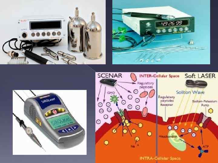 Терапиялық тиімділігі: қабынуға қарсы әсер, бактерия жойғыш және бактериостатикалық әсер, ісікке қарсы әсер, алмасу процестерінің жақсаруы, біте бастау процестерінің үдетілуі, қан элементтерінің жасалуына әсер етеді (эритроциттер, гемоглобин мөлшері ұлғаяды, ЭОЖ азаяды), тромболиттік әсер, нейроэндокринді жүйенің қызметтерін белсенді ету, аралық ми – мидың қосымша бөлігі – бүйрек безі жүйесін қуаттандыру, организмнің табиғи төзімділігін қуаттандыру, сондай-ақ сезімталдықты жоғалту әсері. Тиімділік тірі материяны ұйымдастырудың барлық деңгейлерінде айқындалады: субклеткалық, тіндік, органдық және жүйелік. Лазерлік аппаратура. Лазерлік физио- және рефлекстік терапия үшін қолданылатын, терапиялық аппараттарда, газдық гелий-неондық және галлий арсенидіндегі жартылай өткізгішті лазерлер аса кеңінен пайдаланылады. Гелийнеондық лазерлер қан және қоймалжың қабаттар клеткаларымен аса тиімді жұтылатын, қызыл түсті сәуле шығарады (толқынның ұзындығы 632 нм). Жартылай өткізгішті лазерлер инфрақызыл сәуле шығаруды генерациялайды (толқынның ұзындығы 760 -1200 нм), олардың жұтылу коэффициенті қызыл түспен салыстырғанда аз, бірақ биотіндерге өту тереңдігі үлкен – 7 см-ге дейін болады. Жұмыста AL-010, SOFT-LASER, «Галамед» , «Оптодан» сериялы лазерлік аппараттар кеңінен пайдаланылады. Көрсеткіштері: төмен қарқынды лазерлік терапия әр түрлі тіндердегі қабыну және азғындау-дистрофия процестерімен, ауыру синдромымен, организмнің жергілікті қан айналысы-метаболистикалық және иммундық-резистенттік функцияларының бұзылуымен қоса жүретін, алуан түрлі ауруларды емдеу үшін, сондай-ақ зақымданған тіндерді қайтадан қалпына келтіру үшін көрсетілген.