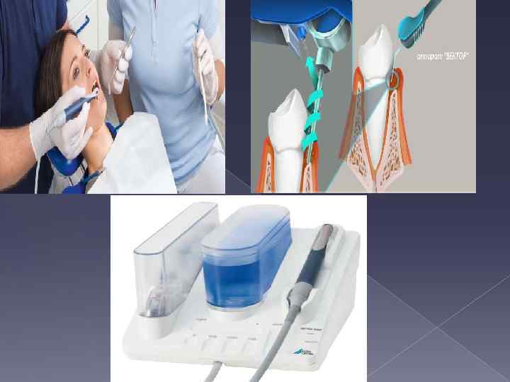 Вектор жүйесі Вектор приборының көмегімен пародонт ауруларын тиімді және мейлінше аз ауыртып емдеуге жаңа мүмкіндіктер беріледі. Вектор аппараты 25 к. Гц жиілікте жұмыс жасайды. Бұрыннан қолданылатын ультрадыбыстық жүйелерден айырмашылығы тербелістер бағыты 900 шегінде болады, осыған байланысты аспаптар тіс бетіне параллель жұмыс жасайды. Осы өзгертілген сипаттамалар салдарынан ультрадыбыс энергиясын эмаль мен дентинді механикалық зақымдауды болдырмау үшін түбірлік бетке бағыттамауға мүмкіндік туды. Вектор аппаратының энергиясы сұйықтыққа толған пародонтальды қалталар арқылы көршілес тіндерге жанама түрде беріледі. Түбірлік бетке перпендикуляр тербелістерді болдырмау салдарынан емдеу кезінде аз ғана аурушаң сезім байқалады. Қосымша түрде бұрын сирек кездескен әр түрлі түйіршікті жемірлі немесе жылтыратушы құралмен бірге су қосу мүмкіндігі бар болады. Аэрозоль тіпті толық жүктеме кезінде де түзілмейді, су тамшысы тербеліп тұратын қондырмада тамшылап тұрады. Мөлшерлеу. Энергияны беру үшін лүпілдік беріліс кезінде жұмыс өрісінің үздіксіз суарылуында жақсы шолынуды қамтамасыз ететін, шамамен 5 мл/мин сұйықтық талап етіледі. Бұл суға (36 минут жұмысқа 120 мл талап етіледі) жылтырату үшін 10 микрон немесе жемірлі тегістеу үшін 50 микрон өлшемді бөлшектері бар тазартушы сұйықтық қосылады. Екі ерітінді де тікелей Вектор приборында ашық қақпақпен жабылған порциялық қапшықтарда резерв ретінде сақталады. 0, 8 -ден 20 м. Гц-ке дейінгі ультрадыбысты тербелістер жақ сүйек тіндерінің жағдайын зерделеу үшін қолданылады (эхоостеометрия). Пародонтологияда ультрадыбыс биоэхолокация әдісі тіндердің тығыздығын бағалауға мүмкіндік береді. Пародонтологияда жүргізген емнің сапасын бағалау мен анықтауда табыспен қолданылады. Аппаратурасы: ЭОМ-01 ц эхоостеометрі