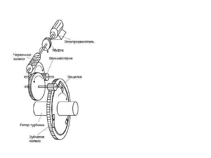Вспомогательное оборудование Турбина имеет систему смазки, которая предназначена для снабжения маслом подшипников турбины, генератора и двух ПТН. В системе смазки применяется огнестойкое масло типа “Файркуэл-Л“, которое является аналогом огнестойкого турбинного масла ОМТИ, которое является аналогом огнестойкого турбинного масла ОМТИ Турбина имеет автономную систему регулирования, в которой применяется огнестойкое масло типа "Файркуэл-Л ". Система уплотнения вала генератора так же автономна, в этой системе применяется масло типа Тп-22. Турбина снабжена ВПУ, которое предназначено для вращения ротора турбины с целью предотвращения их прогиба при прогреве и остывании турбины. Частота вращения ротора турбины при вращении от ВПУ - 2 об/мин. Организация отборов пара за каждой ступенью ЦВД, кроме первой, обеспечивает хорошее влагоудаление без потерь удаляемого пара, так как пар используется в системе регенерации. Вращение турбины по часовой стрелке, если смотреть со стороны переднего подшипника.