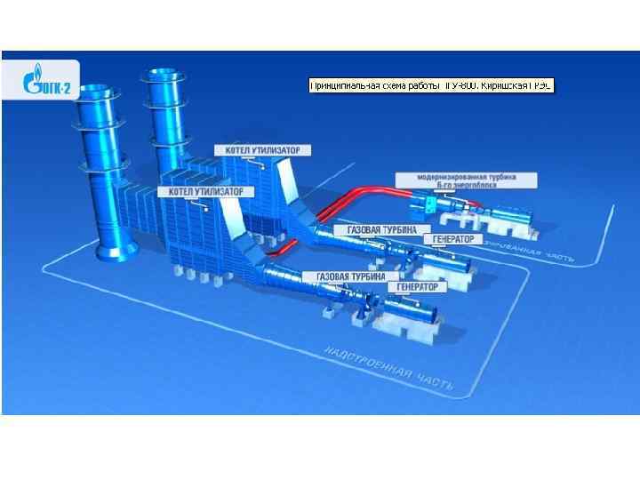 Схема работы паротурбинной установки с конденсационной турбиной (ГРЭС) 1 2 3 4 5 6 7 8 – котлоагрегат – паропровод – паровая турбина – генератор – конденсатор – теплообменник – трубопровод - насос