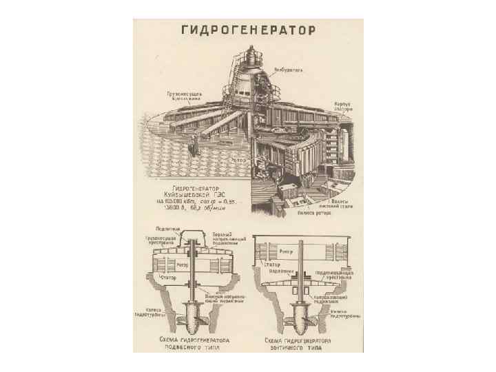 Принципиальная схема гидроэлектростанции • высоконапорные — более 60 м; • средненапорные — от 25 м; • низконапорные — от 3 до 25 м.