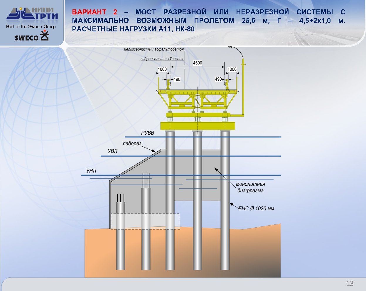Part of the Sweco Group ВАРИАНТ 2 – МОСТ РАЗРЕЗНОЙ ИЛИ НЕРАЗРЕЗНОЙ СИСТЕМЫ С МАКСИМАЛЬНО ВОЗМОЖНЫМ ПРОЛЕТОМ 25, 6 м, Г – 4, 5+2 х1, 0 м. РАСЧЕТНЫЕ НАГРУЗКИ А 11, НК-80 13