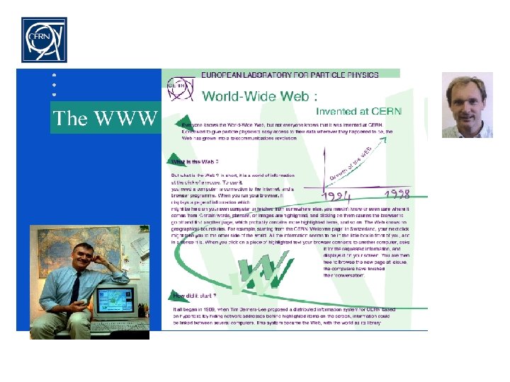 Tim together with Robert Cailliau, another CERN computer scientist, wrote the first WWW client (a browser-editor running under Ne. XTStep) and the first WWW server along with most of the communications software, defining URLs, HTTP and HTML. In December 1993 WWW Tim received the IMA award and in 1995 Tim and Robert shared the Association for Computing (ACM) Software System Award for developing the World-Wide Web.