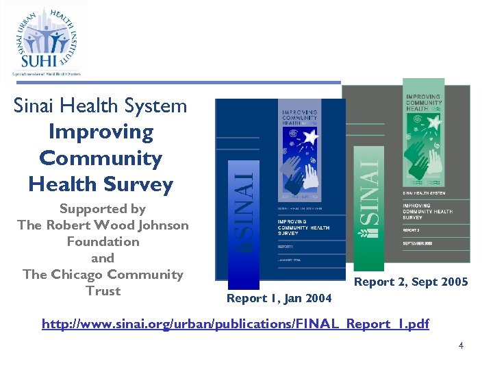 Sinai Health System Improving Community Health Survey Supported by The Robert Wood Johnson Foundation and The Chicago Community Trust Report 2, Sept 2005 Report 1, Jan 2004 http: //www. sinai. org/urban/publications/FINAL_Report_1. pdf 4