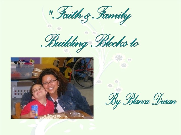 What We’re Doing Today To Help Garrett Reach These Goals I have been teaching him everyday, setting examples, and creating scenarios to help him envision solutions. Often, I have to think outside of the box to support him. I try to create many techniques and I work with him to think of alternative methods and applications when things don’t turn out as planned. The Flower of My Vision My son, Garrett is like a flower. A flower is not always perfect, so is my son. A flower needs nurturing and constant loving care, so does my son. When a flower wilts it needs attention and support, so does my son. The flower needs sun to grow, so does my son. My vision for this flower is to be happy, enjoy the surrounding, enjoy the sunshine as it makes it grow, enjoy the support and nurturing as it gets from the caretaker, enjoy the independence as it deserves and give it time to blossoms the way God gave this flower to grow. You will find the beauty in this flower. This is my vision for my son.