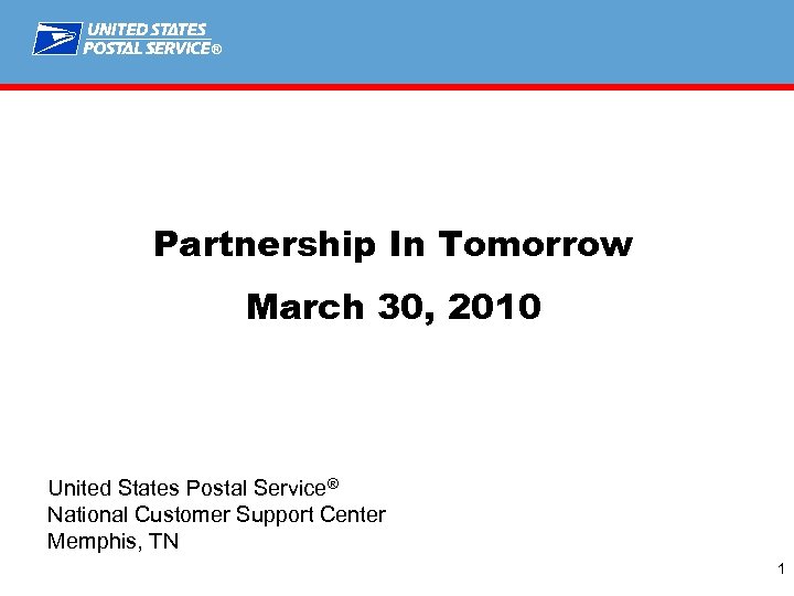 ® Partnership In Tomorrow March 30, 2010 United States Postal Service® National Customer Support Center Memphis, TN 1