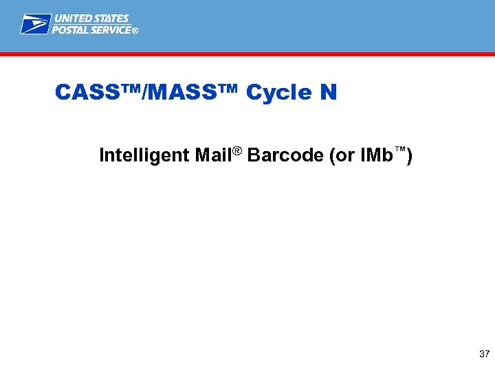 ® CASS™/MASS™ Cycle N Intelligent Mail® Barcode (or IMb™) 37