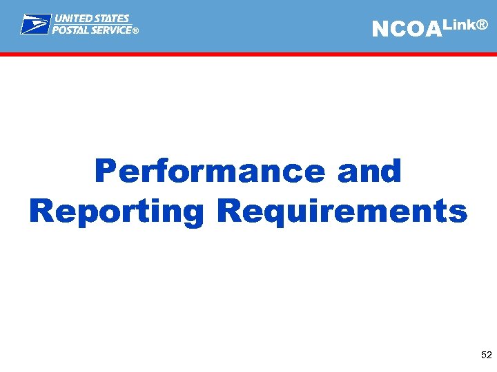 ® NCOALink® Performance and Reporting Requirements 52