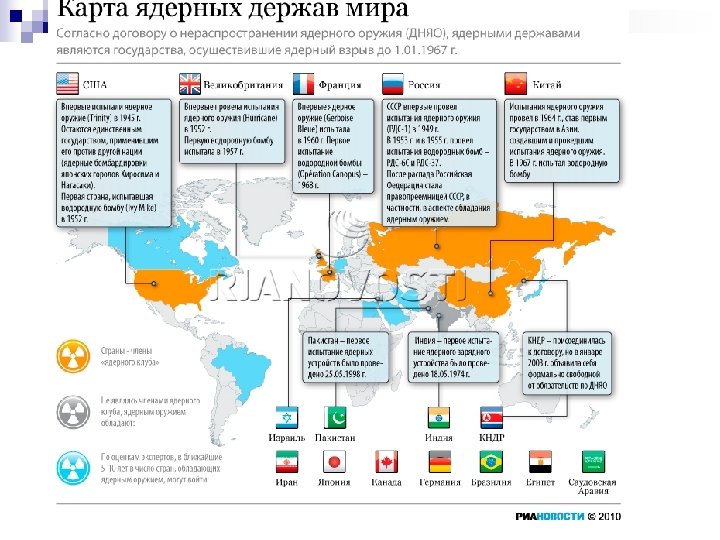 Безпекове середовище та актуальні загрози національним інтересам і національній безпеці України: n Посилення дії глобальних чинників, які загрожують стратегічній стабільності у світі та негативно відбиваються на безпековому середовищі України; n загострення конкуренції між світовими центрами сили, криза міжнародної системи безпеки, заснованої на ялтинсько-гельсінкських принципах, розмивання системи міжнародних угод у галузі стратегічної стабільності, послаблення ролі міжнародних безпекових інститутів; невизначеність засад нової міжнародної системи безпеки; n інтенсифікація процесів мілітаризації світу, окремих регіонів і держав; збільшення кількості «проблемних» країн, які всупереч вимогам міжнародних режимів нерозповсюдження намагаються заволодіти зброєю масового знищення та засобами її доставки;