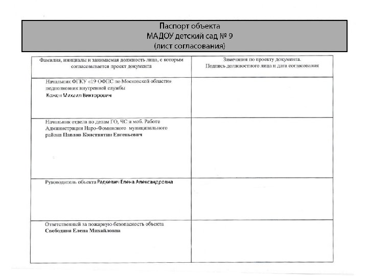 ПАСПОРТ ОБЪЕКТА МАДОУ детский сад № 9, г. Наро-Фоминск, ул. Маршала Куркоткина д. 10 (декларация пожарной безопасности)