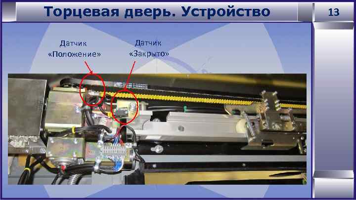 Торцевая дверь. Устройство Датчик «Положение» Датчик «Закрыто» 13