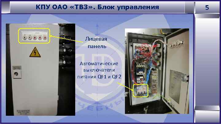 КПУ ОАО «ТВЗ» . Блок управления Лицевая панель Автоматические выключатели питания QF 1 и QF 2 5
