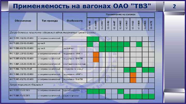 Применяемость на вагонах ОАО "ТВЗ" 2