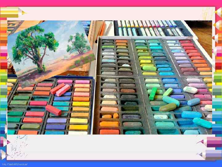 Результатом дослідження є наступні висновки: Ø Пастель - група художніх матеріалів, що застосовуються в графіці і живописі. Це спресовані, стерті у порошок фарби, які найчастіше випускаються у вигляді м'яких кольорових олівців або у формі брусків з круглим або квадратним перетином. Назву «пастель» мають як самі фарби, так і малюнки, створені в цій техніці. Пастельний живопис, в сучасному його розумінні, з’явився порівняно недавно. Історія пастелі, як матеріалу, налічує близько трьохсот років. Його самостійний розвиток починається з моменту, коли малюнок перестає бути допоміжною технікою для живопису і стає рівноправним видом мистецтва. Для пастелі гарні всі сюжети через ту легкість, з якою розтушовують фарби на пастозному тлі, дозволяючи врівноважити найтонші відтінки кольору, світла і тіні. Пастель допускає велику різноманітність у техніці. Вона поєднує властиву малюнку швидкість штриха з багатством художніх засобів, якими володіє живопис.