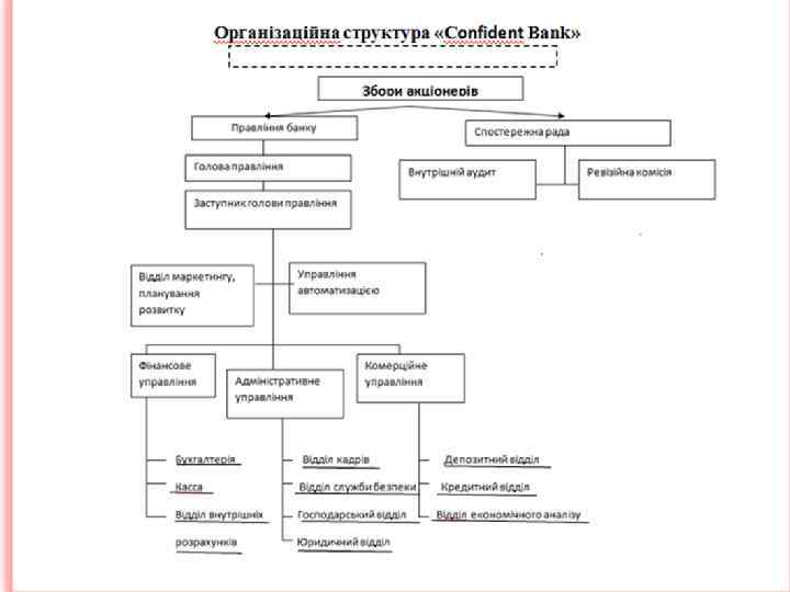 Стратегія банку • Стратегія банку базується на постійному розширенні банківського бізнесу із метою посісти лідируючі позиції на основі гнучкої та адекватної до змінюваного ринкового середовища системи управління банком.