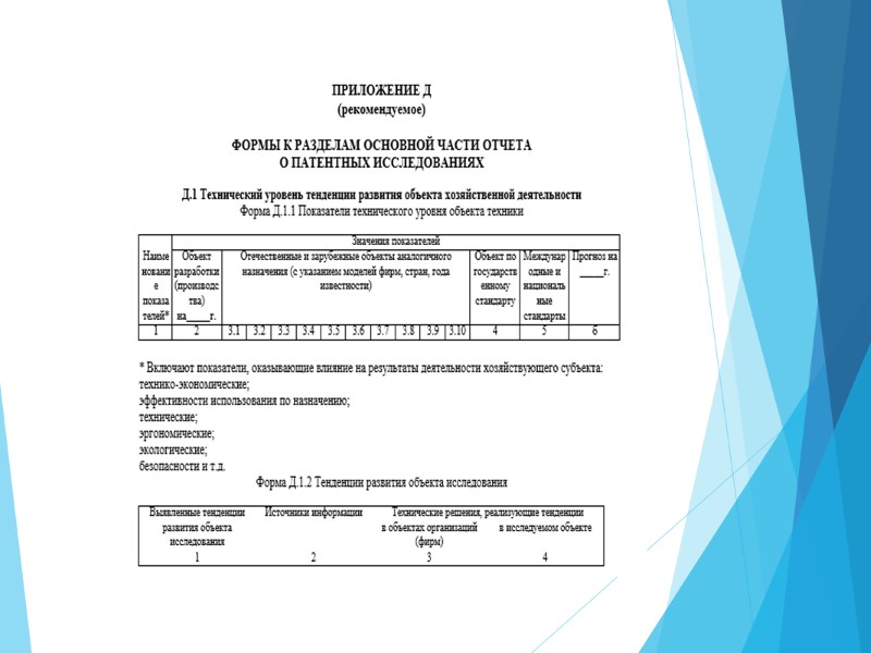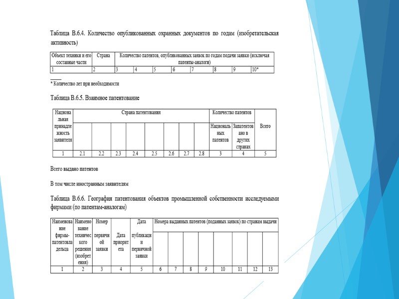 Отчет о патентном исследовании Структура отчета о патентном исследовании: титульный лист; список исполнителей; содержание; перечень сокращений, условных обозначений, символов, единиц, терминов; общие данные об объекте исследований; основная (аналитическая) часть; заключение; приложения.