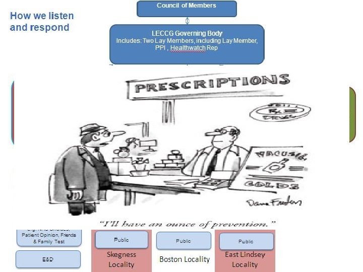 • NHS Lincolnshire East Clinical Commissioning Group authorised on 1 April 2013 • Skegness & Coast, East Lindsey and Boston Area localities include 30 practices covering 1, 060 square miles including Skegness, Louth and Boston • Population 241, 246 • Budget 2013/14: £ 310 m