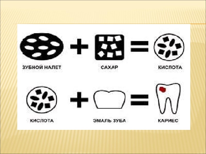 Между эмалевыми призмами образуются мелкие зазоры, структура ее становится пористой, ломкой, что ведет к более глубокому внедрению микроорганизмов из зубного налета. Метаболиты микробов способствуют разрушению органических элементов эмали. (оболочки призм, пластинки) Продукты белкового распада являются хелатерами, которые еще в большей степени мобилизируют кальций из минеральных солей эмали и дентина