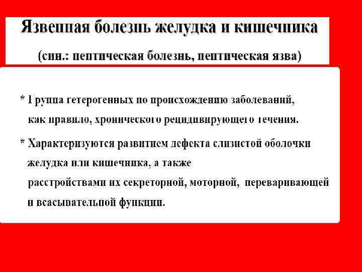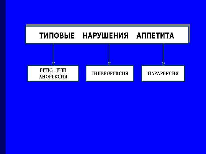 Вопросы занятия o Расстройства аппетита. Этиология, патогенез. o Общая этиология и патогенез расстройств o o пищеварительной системы. Нарушения функций желудка. Острые и хронические гастриты. Язвенная болезнь. Роль микробного фактора. Расстройства функций кишечника. Нарушения всасывания. Патогенетическая классификация диареи. Дисбактериозы. Этиопатогенез целиакии.