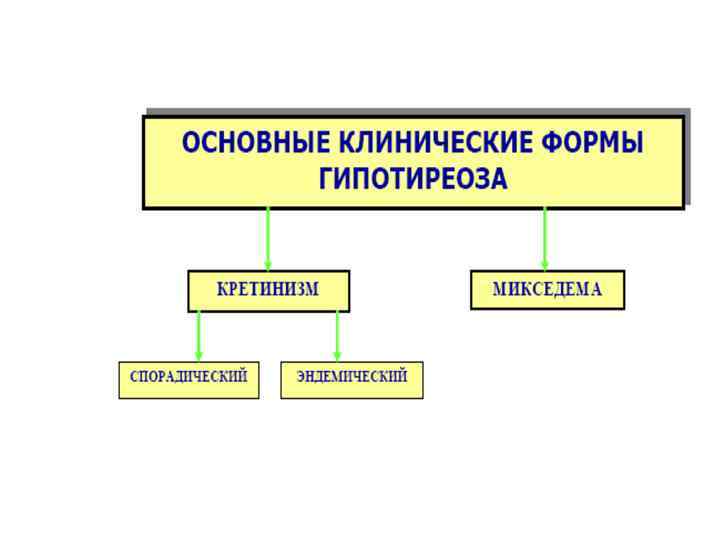По локализации поражения различают следующие гипотиреозы: • первичные, железистые гипотиреозы; • вторичные (центральные гипоталамогипофизарные); • третичные (внежелезистые), рецепторные, транспортные.