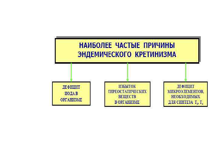 Кретинизм Это форма патологии, характеризующаяся отставанием психического, соматического и полового развития вследствие резко выраженной недостаточности общебиологических эффектов тиреоидных гормонов. А. Спорадический (греч. sporadikos – отдельный) кретинизм ( «врожденная микседема» , болезнь Фагге). Б. Эндемический (греч. endemos – местный) кретинизм ( «истинный» )