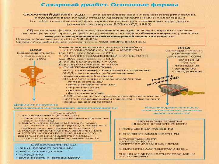 ПРИЧИНЫ АБСОЛЮТНОГО ГИПОИНСУЛИНИЗМА БИОЛОГИЧЕСКИЕ Генетические дефекты -клеток (HLA- DR 3, DR 4; DQ, B 1) снижение синтеза инсулина • ИГ, повреждающие -клетки (ICA, ИГ к инсулину in, белку 64 К), • Т-л, • NK, • ФНО … ХИМИЧЕСКИЕ Вирусы, тропные к -клеткам (Коксаки, кори, краснухи) аллоксан эндогенный аллоксан цитостатики этанол ФИЗИЧЕСКИЕ радиация травма pancreas образование чужеродных для системы ИБН антигенов БИА ВОСПАЛЕНИЕ (ИНСУЛИТЫ) С А Х А Р Н Ы Й Д И А Б Е Т (ИЗСД)