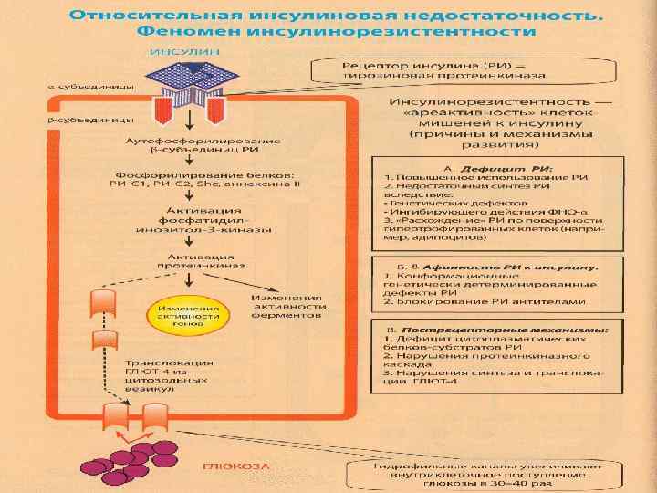 ОСНОВНЫЕ ЗВЕНЬЯ ПАТОГЕНЕЗА ОТНОСИТЕЛЬНОЙ ИНСУЛИНОВОЙ НЕДОСТАТОЧНОСТИ ПАТОГЕННЫЕ ФАКТОРЫ ЗВЕНЬЯ ПАТОГЕНЕЗА “КОНТРИНСУЛЯРНОЕ” ИНСУЛИНАЗА АНТИТЕЛА ПРОТЕАЗЫ “КОНТРИНСУЛИНОВЫЕ” ГОРМОНЫ (КИГ) “ТРАНСПОРТНОЕ” “ФИКСАЦИЯ” ИНСУЛИНА ЕГО ПЕРЕНОСЧИКАМИ В КРОВИ “РЕЦЕПТОРНОЕ” (“ГИПОРЕАКТИВНОЕ”) ГИПОСЕНСИТИЗАЦИЯ РЕЦЕПТОРОВ КЛЕТОК К ИНСУЛИНУ ГИПЕРСЕНСИТИЗАЦИЯ РЕЦЕПТОРОВ КЛЕТОК К КИГ - ЛИПОПРОТЕИДЫ ОТНОСИТЕЛЬНЫЙ ГИПОИНСУЛИНИЗМ (ИНСД)